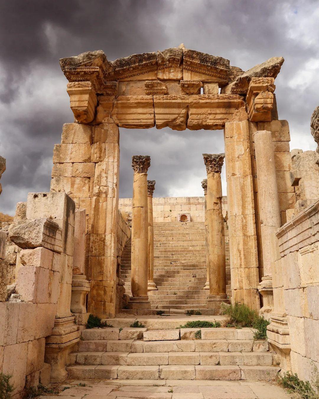 Jerash: Your journey begins with a visit to Jerash, one of the best-preserved Roman cities in the world. Wander through its grand colonnaded streets, marvel at the intricacy of Hadrian’s Arch, and step inside the mighty Temple of Artemis. The massive amphitheaters, public squares, and ancient ruins all come together to tell the fascinating story of this once-thriving Roman metropolis.